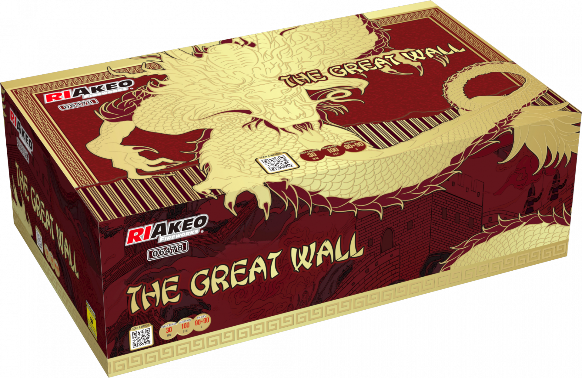 De Chinese muur wordt ook wel the Great Wall genoemd. Dit is één van de meest indrukwekkende bouwwerken in de hele wereld. Daar zit ook de directe link naar deze dijk van een dubbele compound. Dit is werkelijk een pyro-bouwwerk van formaat. Indrukwekkend in kleur, indrukwekkend in effecten. Een 180 schots powerbox die staat als een huis. De combinatie's die jou voorgeschoteld worden zijn fenomenaal. Dit zie je eigenlijk nooit. Alle kleuren van de regenboog komen voorbij en ze zijn zo helder dat je hele wijk verlicht wordt. De breed uitgewerkte effecten worden geschoten in i-shape, W-shape en fanshape. Hierdoor blijft de compound continue spannend. Dit wordt nog extra versterkt door de fantastische salvo's en tempowisselingen. Dus wil jij tijdens oud & nieuw niet tegen een muur aanlopen met saai vuurwerk? Dan is dit de allerbeste keuze voor jou! The Riakeo Great Wall is better then them All!!!